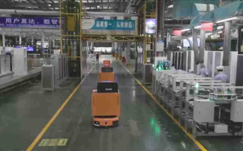 为车载冰箱物流配送打造的智能解决方案,,包含产中物流通过潜伏举升AMR搬运至线边,,,,产后成品物流智能仓储,,,流程包含产中物流智能齐套入库,,,线边安灯叫料AMR智能配送至线边,,,成品入库、、、出库,,,,通过无人堆高车机器人,,,,智能仓储管理替代人工作业管理,,,实现更高存储、、、更高效率、、、、更具柔性化的解决方案。。。。