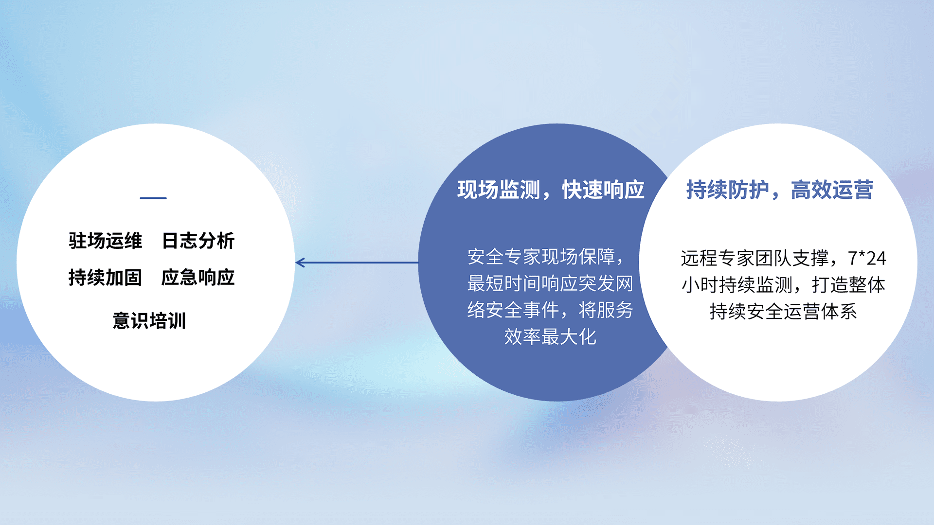 7X24小时持续监测安全事件,保持安全策略有效性,降低资产脆弱性风险,,,精准拦截黑客攻击,,减少被黑客利用的机会,,第一时间遏制,,,降低损失。。。。